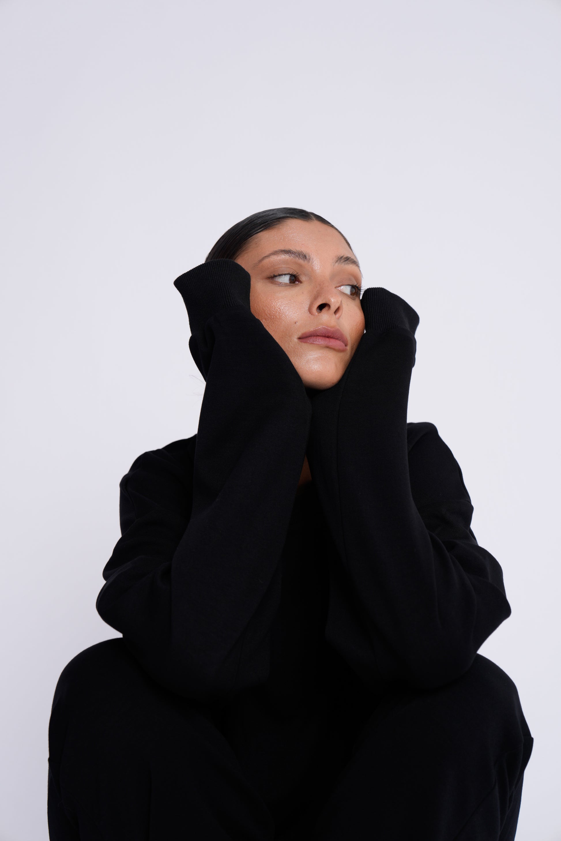 Mit seinem verlängerten Schnitt und den extra langen Ärmeln sitzt er genau da, wo andere Sweater aufhören. Das weiche, elastische Material sorgt für ein angenehmes Tragegefühl, während die lockere Silhouette dir Raum zum Bewegen gibt – ohne formlos zu wirken.